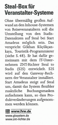 Die IT-Firmen GK System und ZNT Richter vertiefen ihre im September 2002 begonnene Kooperation und legen ihre Kompetenzen zusammen. Der Vertrieb der Travel Software von den Anbietern erfolgt künftig über die von ZNT Richter gegründete Firma ZNT Travel. Geschäftsführender Gesellschafter ist GK-System-Gründer Gökhan Küçükçankaya.